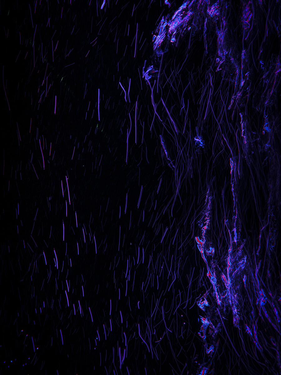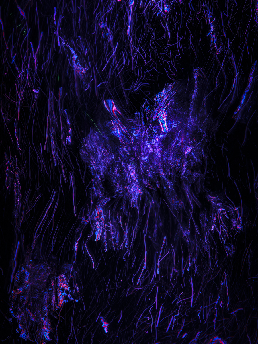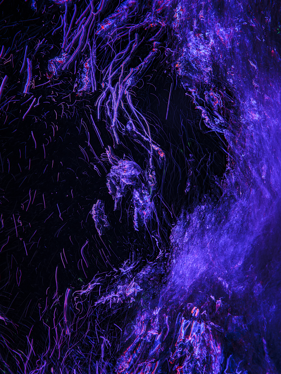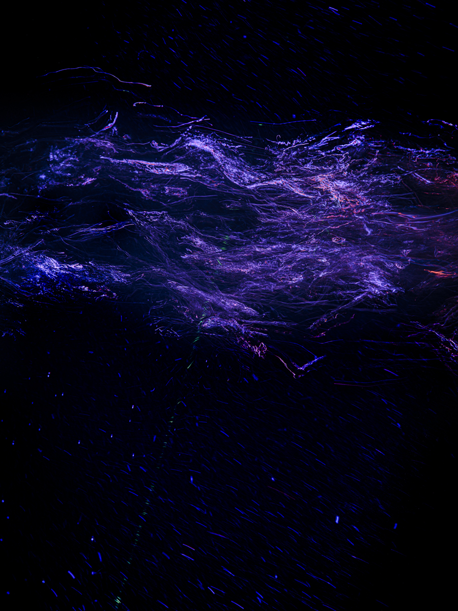 In this artwork, the elements that gave rise to life, light, water, air, and particles merge and dance together, creating a visual expression of that eternal transformation.
